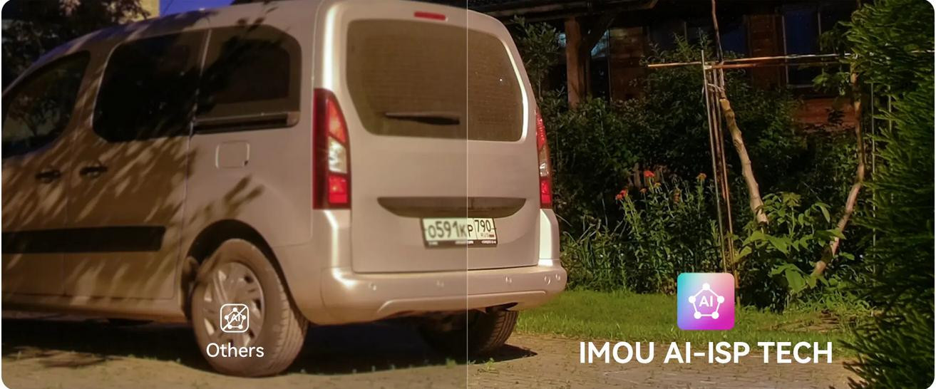 Dzięki technologii Imou AI-ISP¹ (zawierającej 6 inteligentnych modułów AI) Titan Pro rozjaśnia ciemne sceny i uwidacznia detale niczym w świetle dziennym.